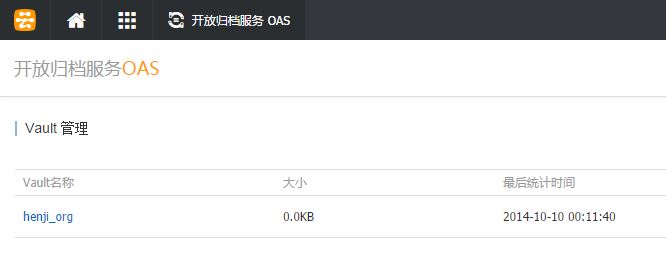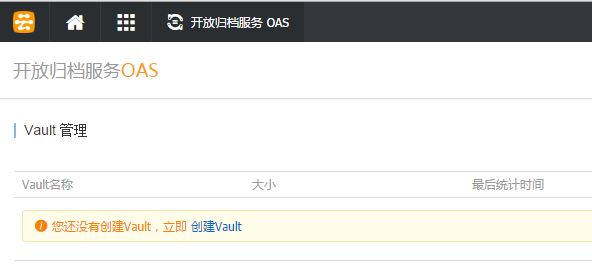 运行:[root@cloud-1 aliyun]# python2.7 create_vault.py 此时,管理界面出现新建立的Vault了,如: