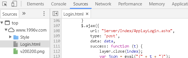 我知道了接口地址:Server/Index/ApplayLogin.ashx,也就是 http://www.1996v.com/Server/Index/ApplayLogin.ashx