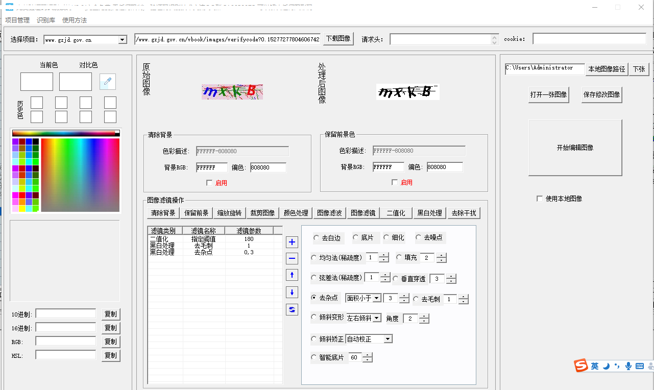 就是通过一系列的算法,通过图片的背景颜色等,来对图片进行分解,最终得出正确率高的验证码。