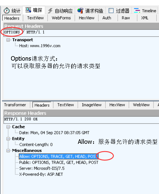 一般服务器会自动关闭掉危险的请求方法,上图我所示的是IIS7.5默认的 服务器允许请求的类型。
