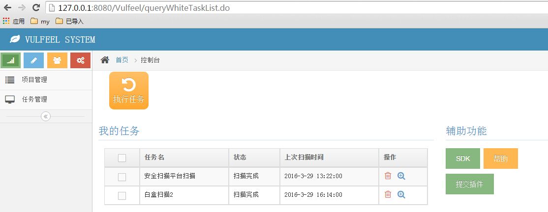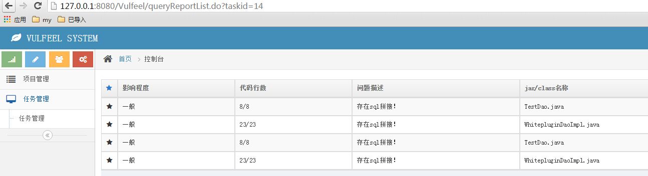 现在项目主要是搭建一个架子,web黑盒扫描的架子也类试,白盒扫描现在是静态代码扫描,没有用PMD等对代码生成语法树分析等,还非常简单。后面有时间再完善和扩展。