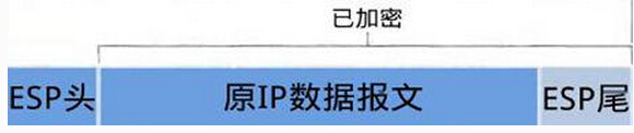 2、将原IP报文以及第1步得到的ESP尾部作为一个整体进行加密。具体的加密算法与密钥由SA给出。