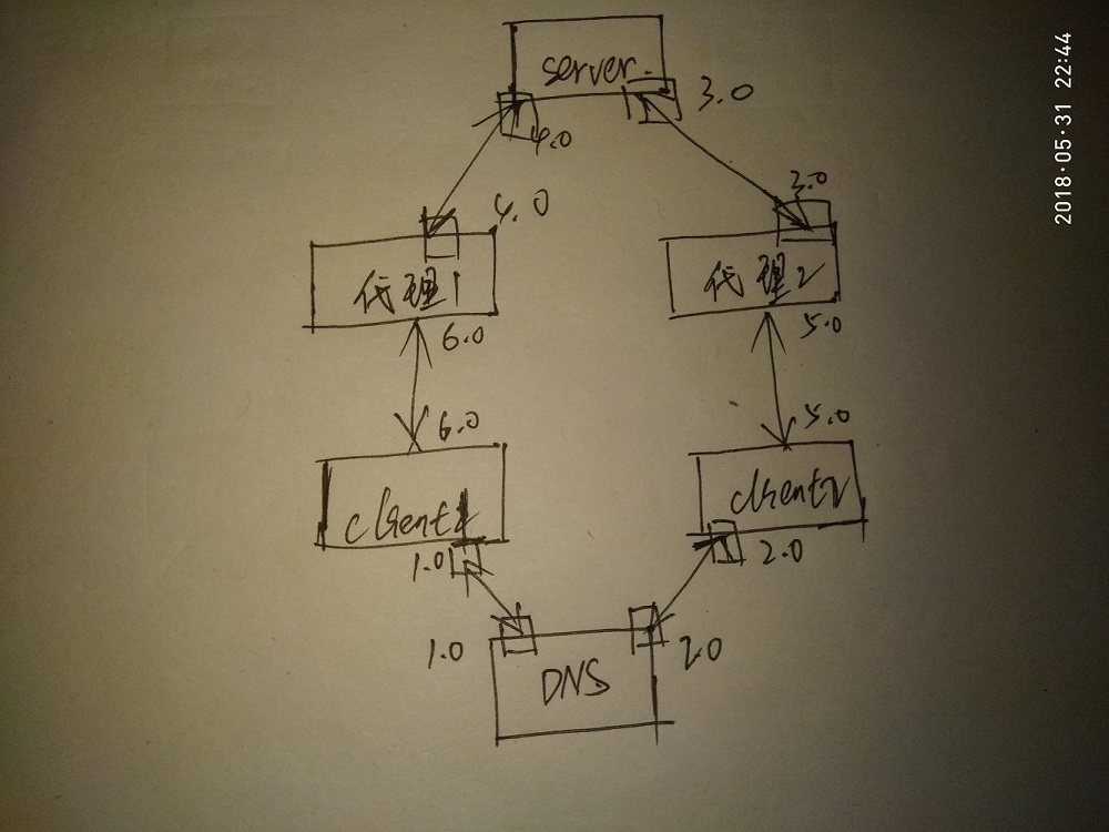 2.配置DNS分离解析服务器,不同的网段分配不同的代理服务器,并提供域名解析。模拟全国站点就近访问代理,加速访问速度