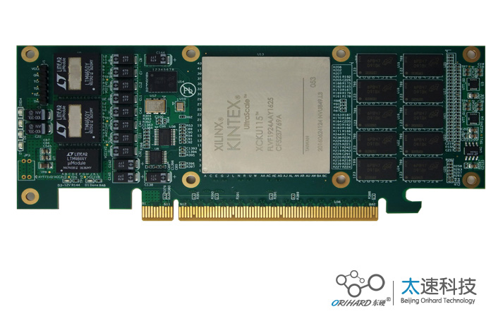 本板卡系我公司自主研发,采用Xilinx公司的XCKU115-3-FLVF1924-E芯片作为主处理器,主要用于FPGA硬件加速。板卡设计满足工业级要求。如下图所示:
