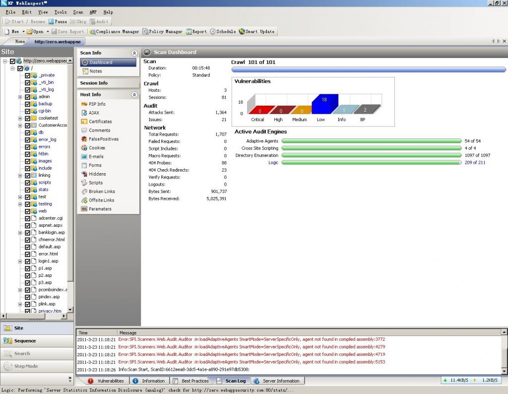 WebInspect可用于对复杂网络上的Web应用程序进行安全性测试和评估。利用创新的动态安全分析技术及评估技术检查 Web 服务及Web 应用程序的安全,惠普WebInspect提供快速扫描功能,及准确的Web应用程序安全扫描结果。
