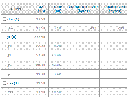 在这个例子中,我分别对服务器输出的HTML文档、JS文档和CSS文档使用了GZIP压缩,可以看到压缩效果非常明显,文件体积减小了70%以上。页面加载速度明显加快。