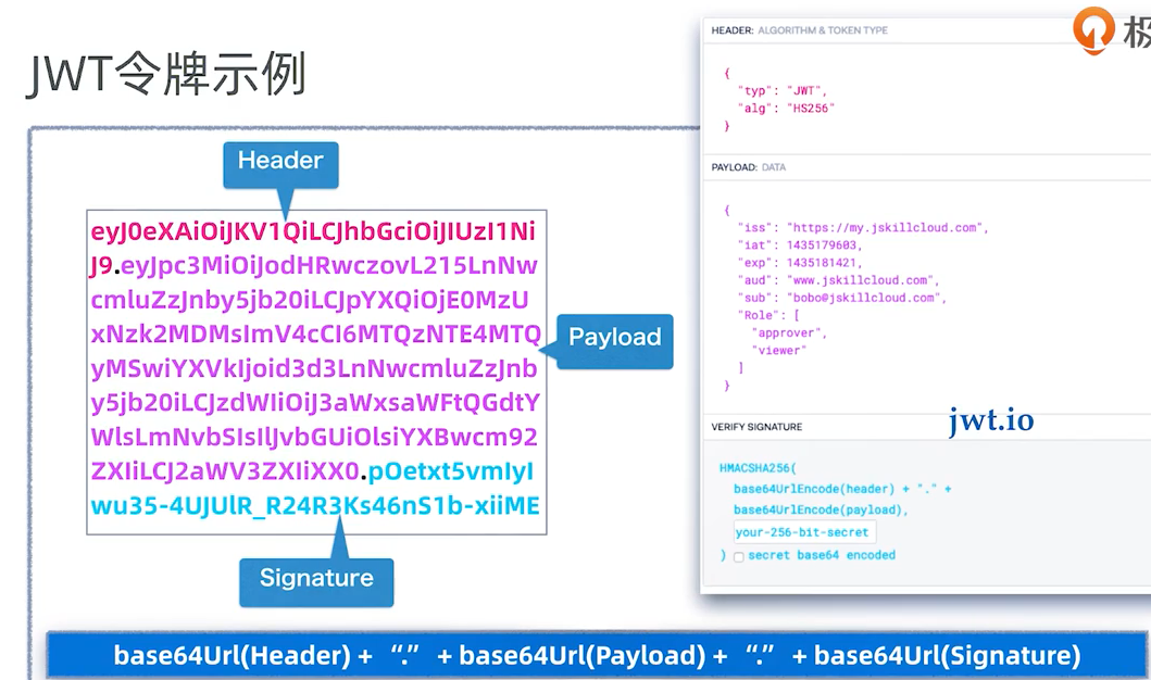 结构: Header + Payload(消息体) + Signature(签名),中间使用 . 来区分