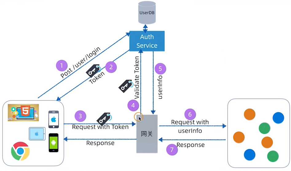 - 4.后端微服务拿到token后去调用 Auth Service 校验Auth token是否合法。