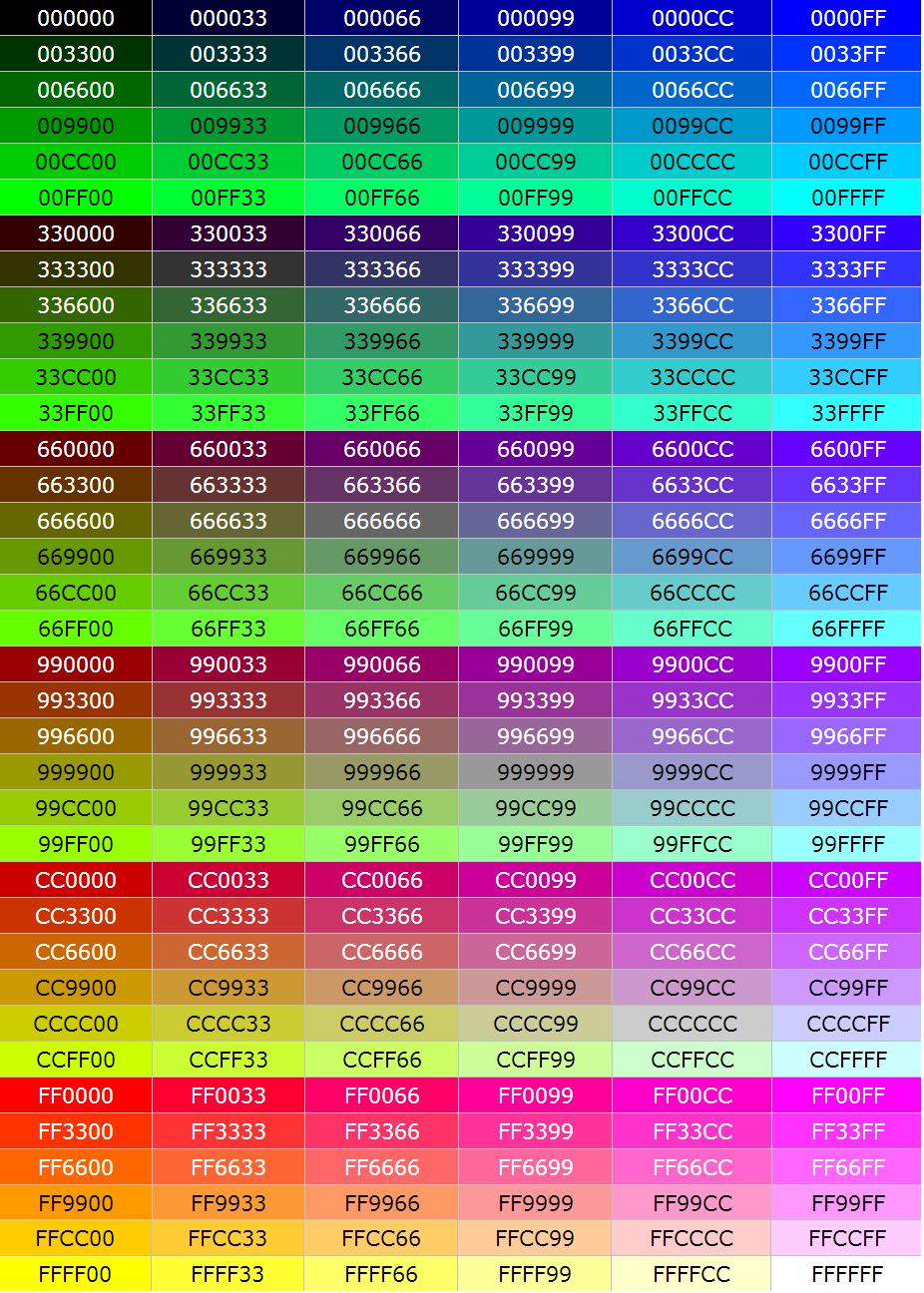 216种安全色颜色列表(16进制)