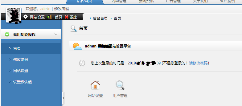 用御剑后台扫描工具爆破好像被服务器发现拒绝访问了,最后尝试使用google hacking语法测试找到其后台为http://www.xxxxxxx.com/Admin/Login.aspx?returnUrl=%2fadmin%2flogin.aspx,然后登录成功,如图5、6
