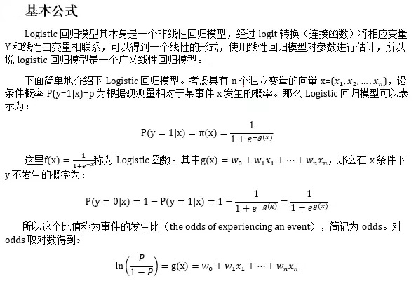简单介绍算法原理:Logistic回归为概率型非线性回归模型,是研究二分类观察结果与一些影响因素之间关系的一种多变量分析方法。通常的问题是,研究某些因素条件下某个结果是否发生,比如医学中根据病人的一些症状特征来判断它是否患有某种病。