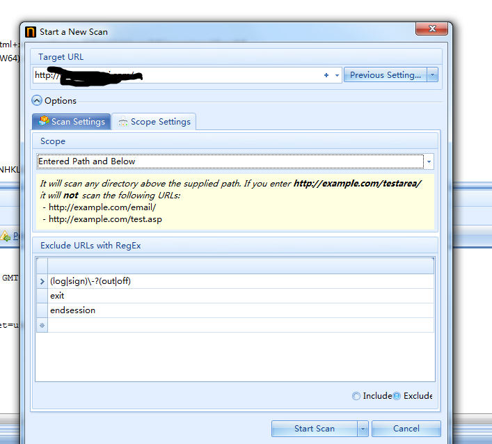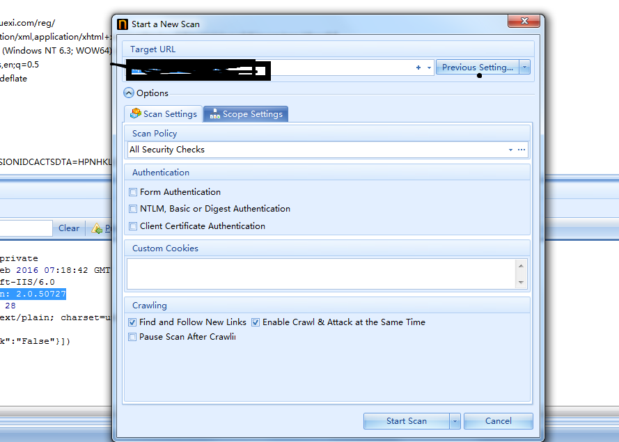 一 新建. 打开软件后,首先创建一个方案,设置要扫描的网站地址(可设置路径)和验证策略如cookie form等.