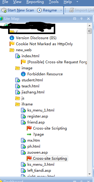 1 首先看到的是左侧,有一个网站的地图 ,里面会有漏洞的标识.