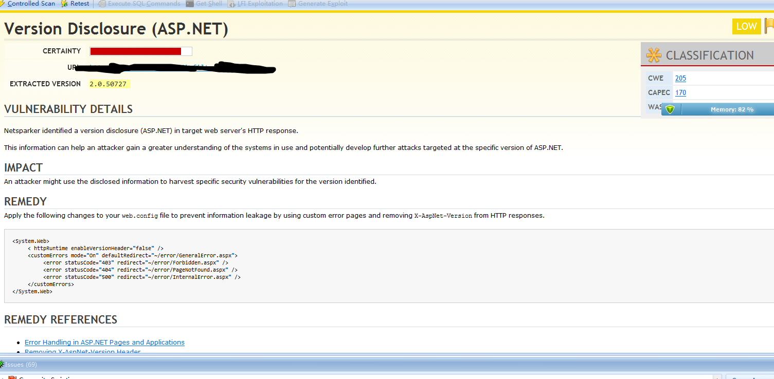 4 点击上图,可以查看详细的漏洞信息 ,而且会有建议和部分解决方法.如下图