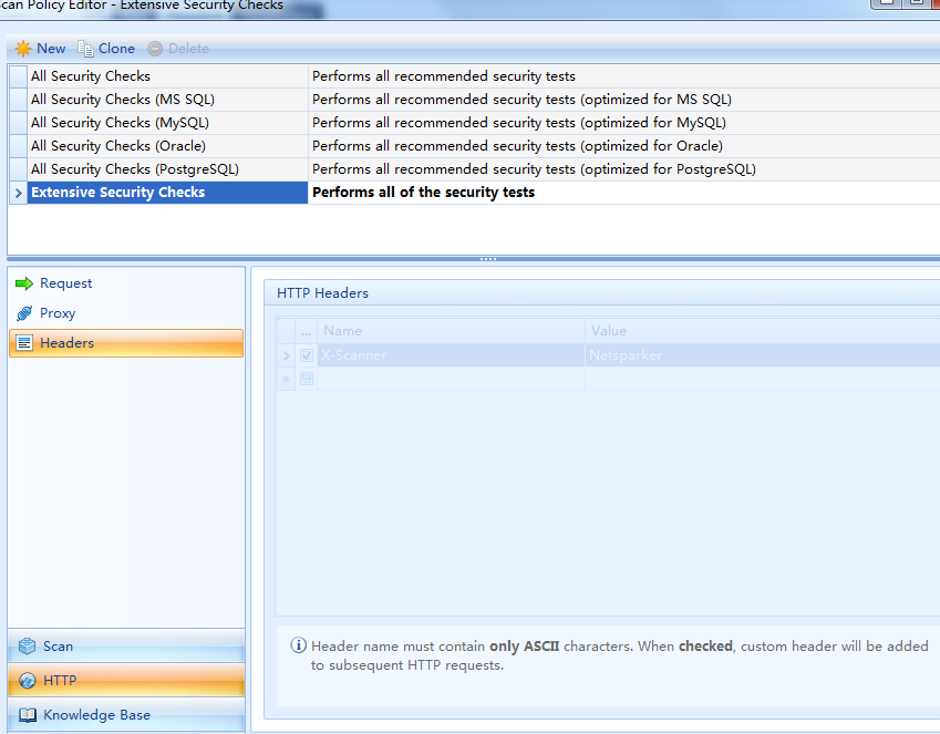 主要是可以配置代理和自定义的扫描规则. 默认的规则不能删除