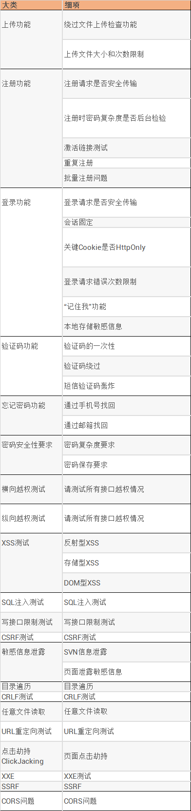 - 关键cookie是否HTTPONLY:如果Cookie设置了HttpOnly标志,可以在发生XSS时避免JavaScript读取Cookie。