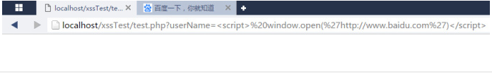 http://localhost/xssTest/test.php?userName=<script>window.open(http://www.baidu.com)</script>