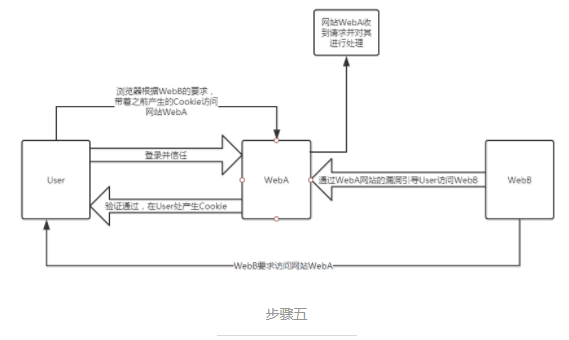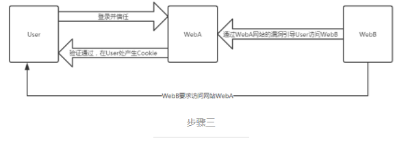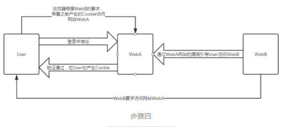 4.用户User的浏览器根据WebB的要求,带着步骤一中产生的Cookie访问WebA。