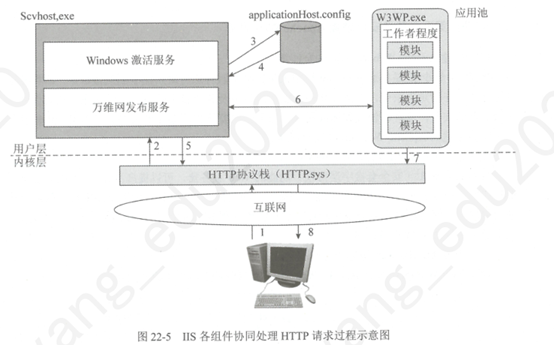- HTTP.sys联系WAS(Windows Process Activation Service),从配置库中获取信息