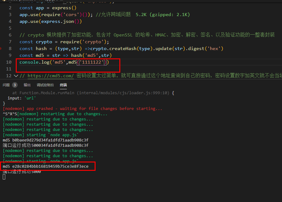 md5反查,用node启动了一个本地服务,使用node提供的crypto对密码加密
