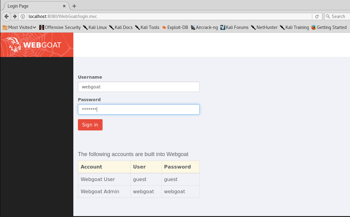 说明webgoat服务已经开启了,打开浏览器访问http://localhost:8080/WebGoat,出现如下页面