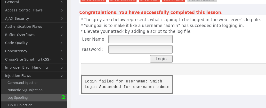 有一个登录界面,提交会在日志中出现下中的记录,目标是欺骗管理员”admin”用户成功登入。输入文本框没有任何内容限制。