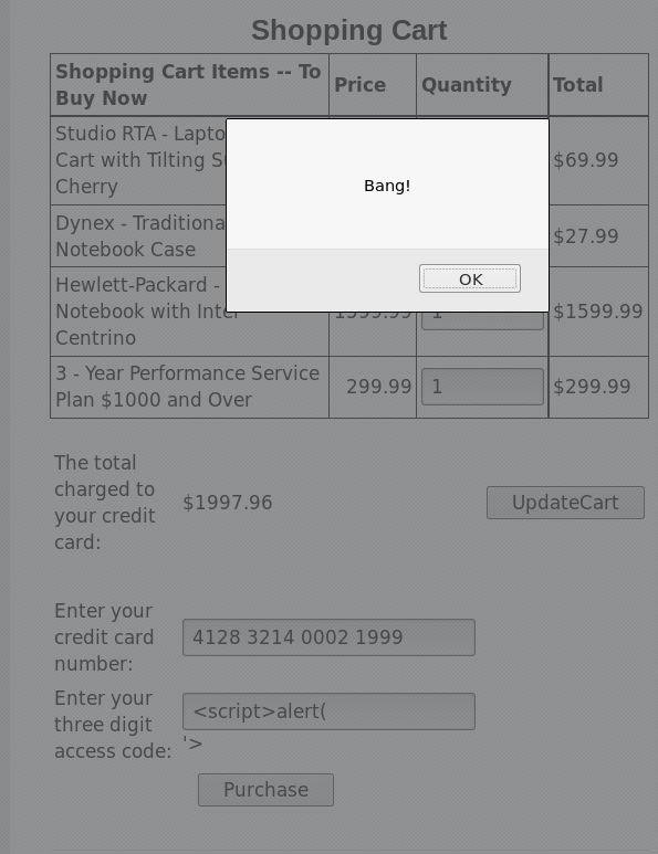 For this exercise, your mission is to come up with some input containing a script. You have to try to get this page to reflect that input back to your browser, which will execute the script and do something bad.