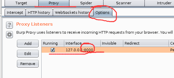 burpsuite有很多功能,我们这里只用它的proxy,首先新建项目的配置全部按照默认就可以,然后配置本地代理服务器,监听8000端口,默认是8080,但和webgoat冲突了。burpsuite里配置好后打开火狐,preferences->advanced->network里面配置代理服务器