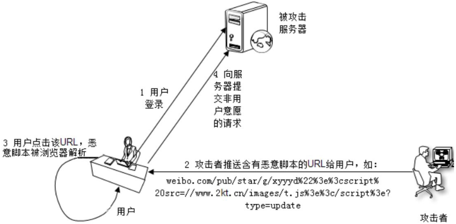 XSS攻击:黑客通过篡改网页,注入恶意HTML脚本,在用户浏览网页时,控制用户浏览器进行恶意操作的一种攻击方式。