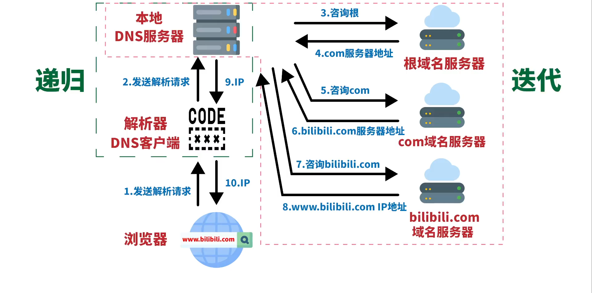 DNS ( Domain Name Service) 作为一个非常让人耳熟能详的概念,可以把复杂难记的IP地址转化成为一个容易被记住域名供人们去调用,这样人们只需要记住每一个网站的域名而不需要记住非常复杂的IP地址。