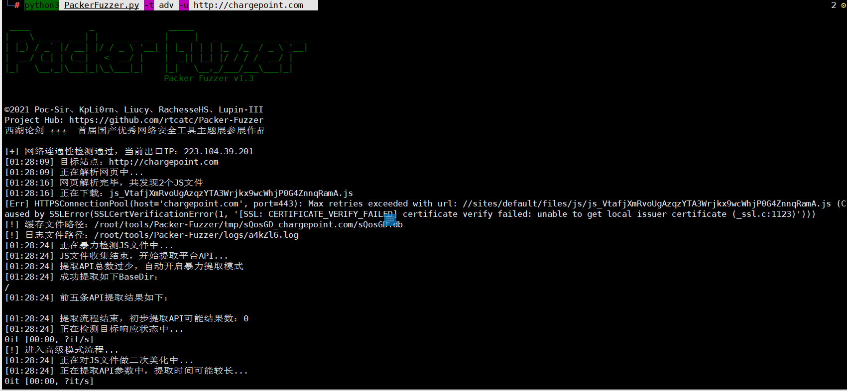 python3 PackerFuzzer.py -t adv -u http://chargepoint.com
