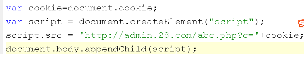 这个JS可以把浏览器中的COOKIE发到admin.28.com(你本地的一个文件)上去