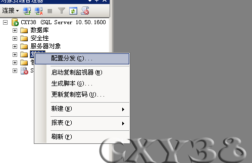 连接到服务器后,右键单击服务器下的“复制”文件夹,然后选择“配置分发”,如图1所示。
