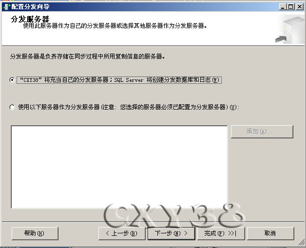 分发服务器是事务复制的核心。在设置所有其他组件时,它必须是可用的,因此需要首先进行配置。