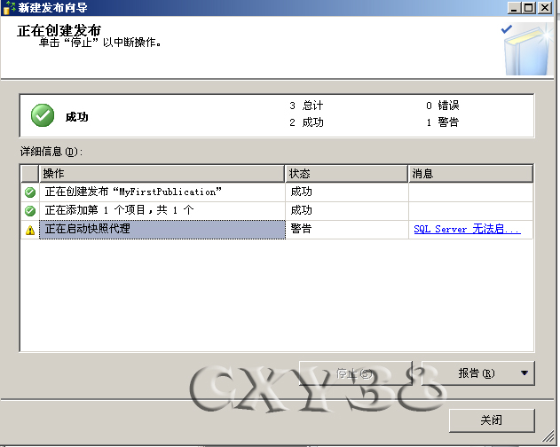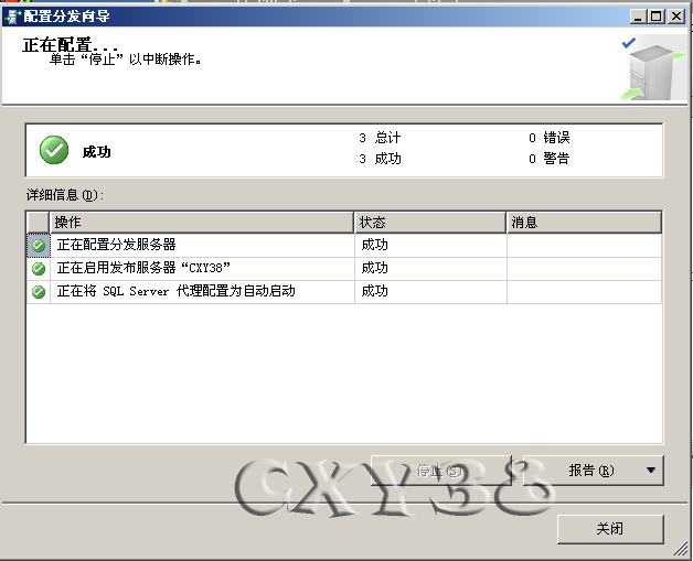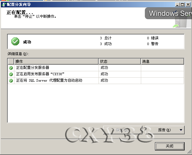 最后,图11所示的窗口给出了有关复制配置的进展和成功的信息。