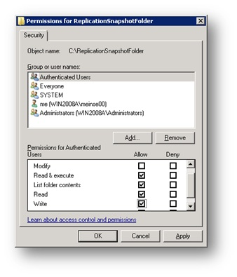 快照文件夹的设置还需要授予适当的权限。现在,无需详细讨论,将写访问权限授予文件夹本身上的“验证用户组”(图5)和读访问权限授予共享上的“每个人”(图6)。有关如何加强这一地区安全的更多信息将在本楼梯的稍后级别给出。