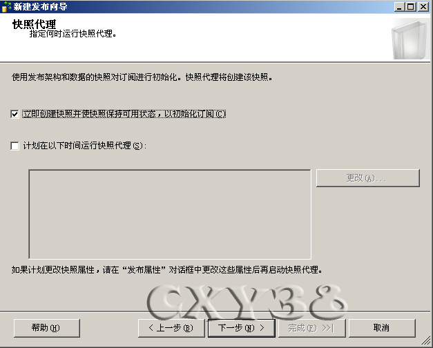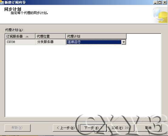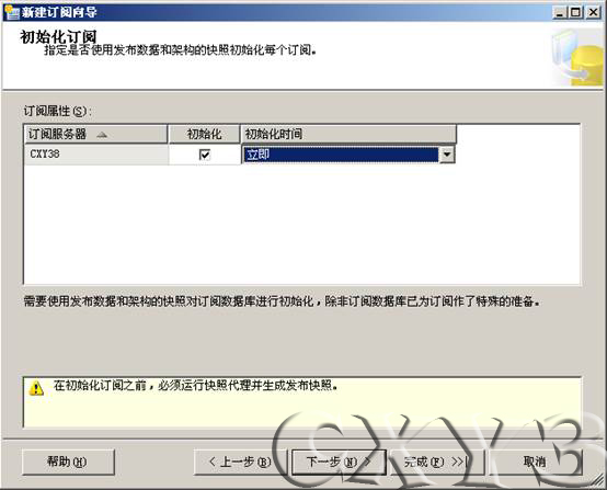 单击“确定”,然后单击“下一步”,就可以进入“同步计划”窗口(图31)。选择“连续运行”,然后转到“初始化订阅”窗口(图32)。保留默认值,以便立即初始化,然后“下一步”到“向导操作”表单(图33)。