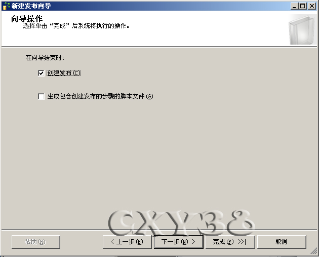 这将显示“向导操作”表单(图21),供您选择“创建发布”。最后一次单击“下一步”将带您到摘要窗口(图22)。