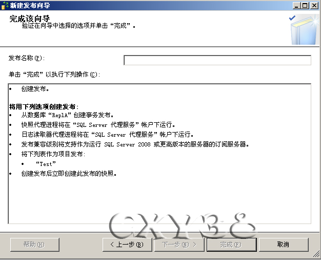这里您需要为发布选择一个名称。在字段中写入“MyFirstPublication”,然后单击“完成”开始该过程。同样,最后一个窗口(图23)显示了流程完成时的进度信息和成功状态。