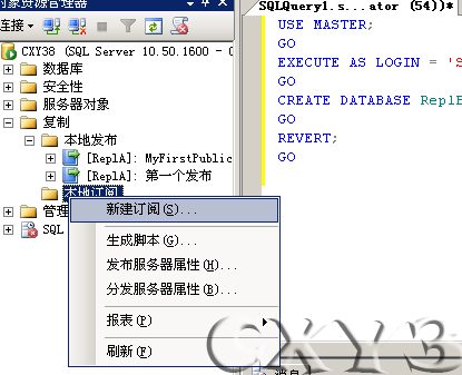 要创建发布,首先需要有一个包含要发布的表的数据库。执行SQL 脚本1为发布创建测试数据库。