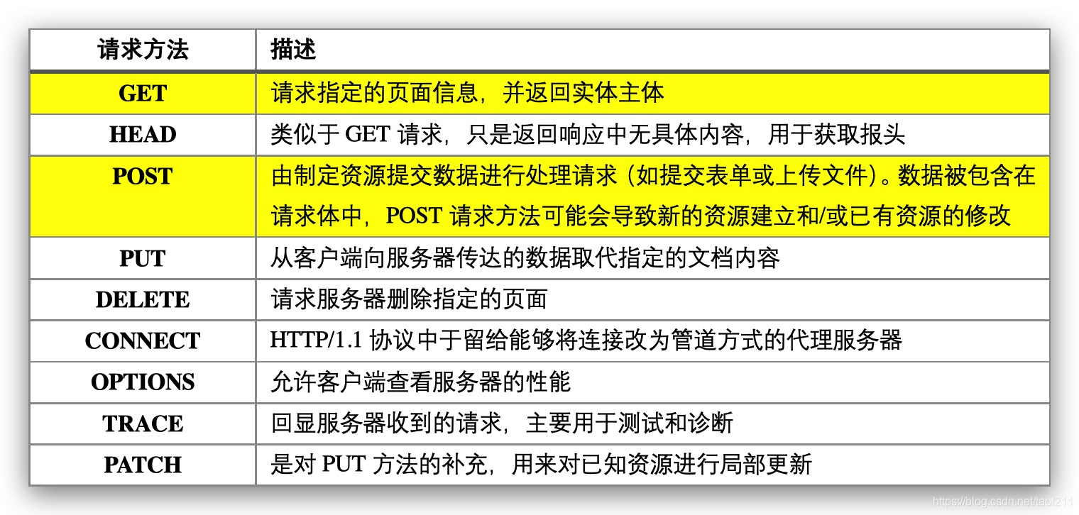 请求方法除了GET(获取)以外,还有POST和HEAD等。GET和POST于HTML中form元素的method属性指定的值相同。