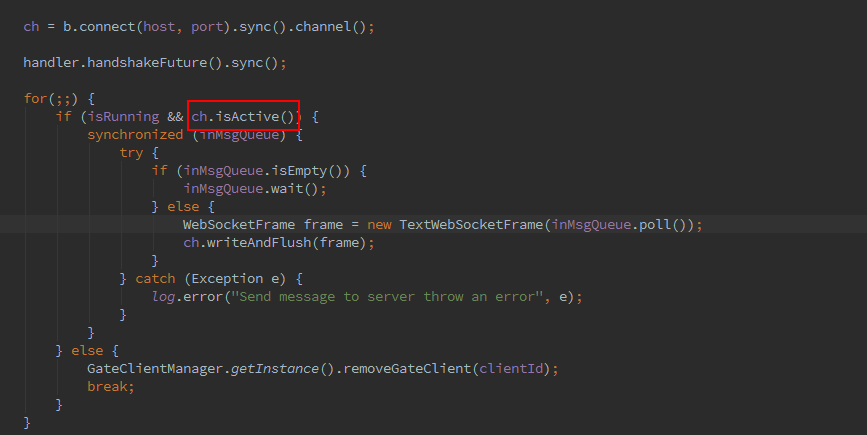 解决方案:在分发请求之前,验证 channle.isActive()。如果false,则主动做出相应处理。