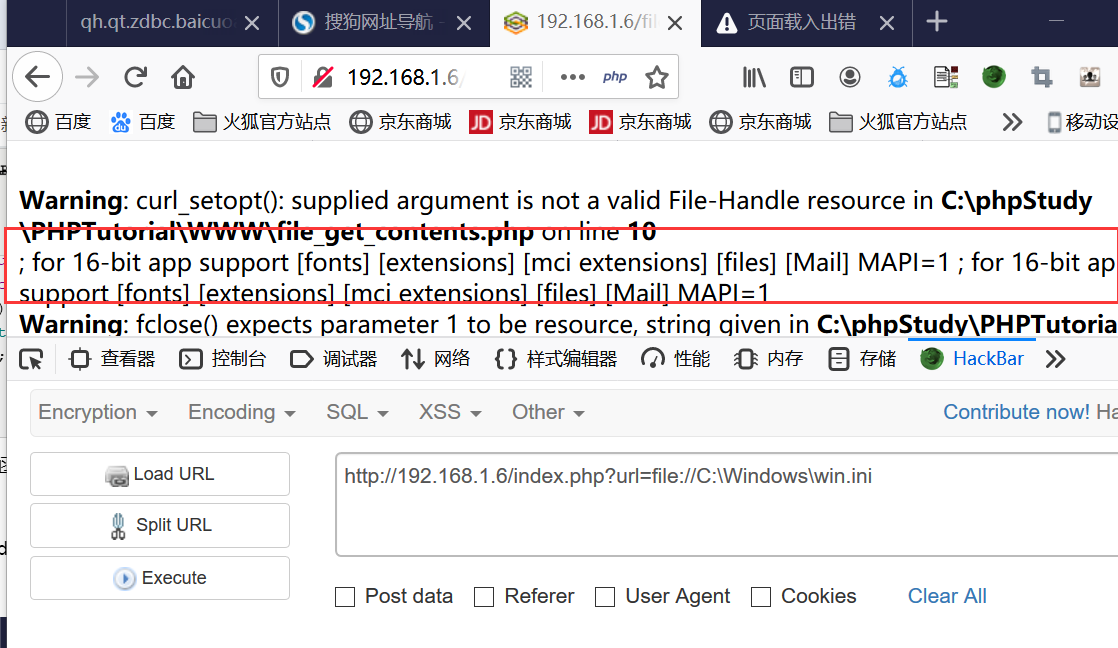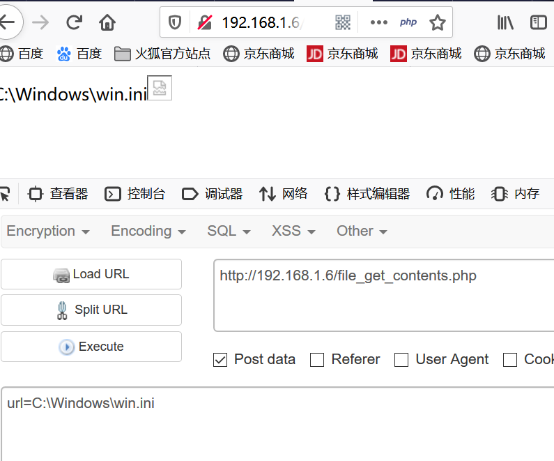 通过file://伪协议读取常见的文件,例如/etc/passwd 我的是windows环境所以简单测试读取windows下的win.ini文件