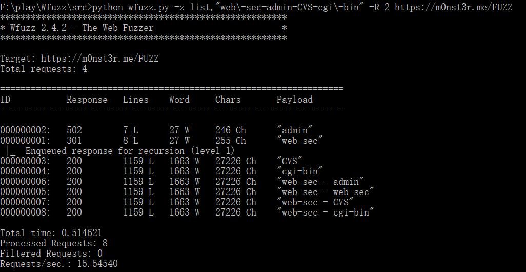wfuzz -z list,"web-sec-admin-CVS-cgi-bin" -R 2 https://m0nst3r.me/FUZZ