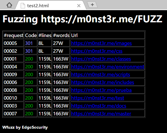 wfuzz -f test2.html,html -w ../wordlist/general/test.txt https://m0nst3r.me/FUZZ