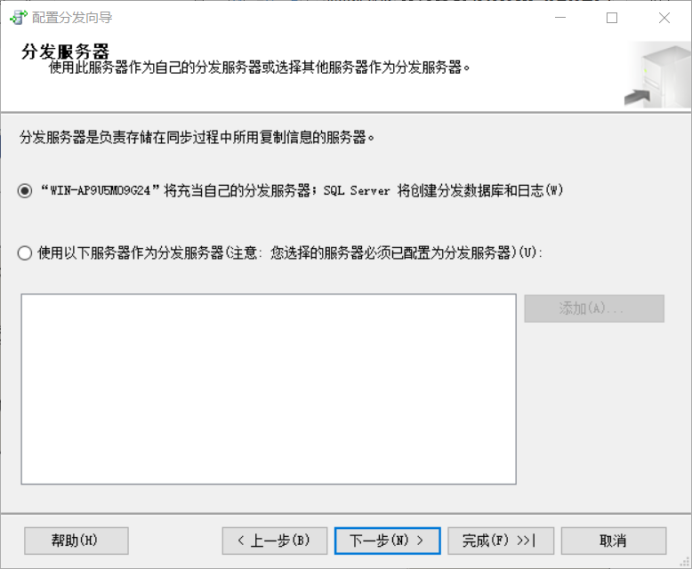分发服务器是事务复制的核心。在设置所有其他组件时,它必须是可用的,因此需要首先进行配置。
