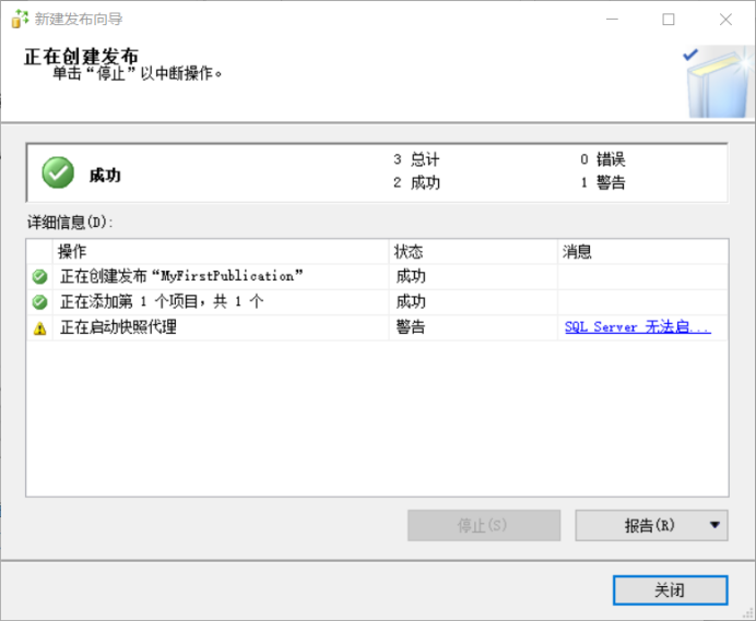 最后,图11所示的窗口给出了有关复制配置的进展和成功的信息。