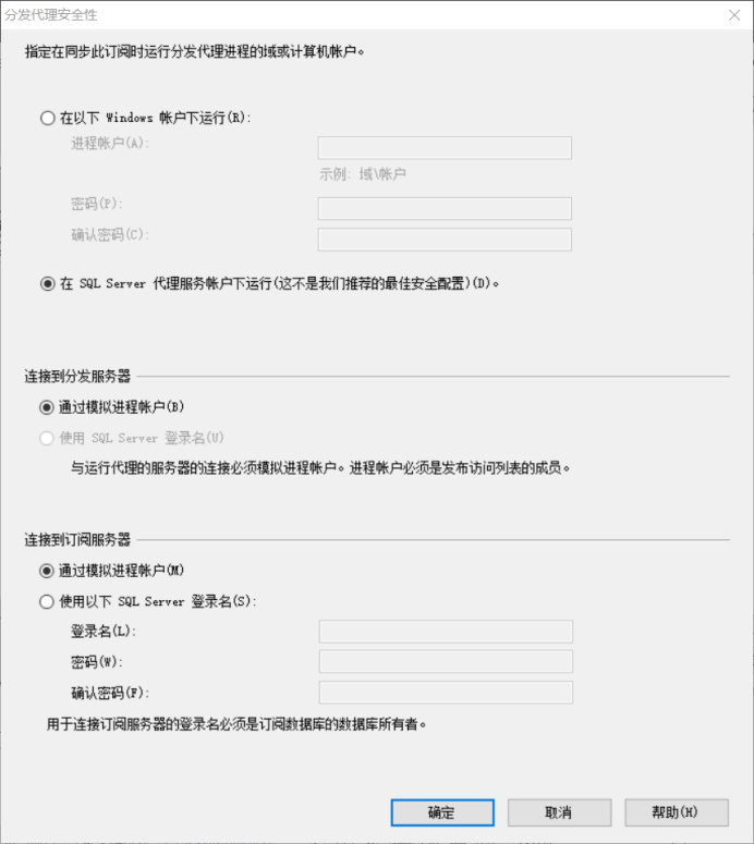 下一个窗口允许您设置“分发代理安全性”(图29)。