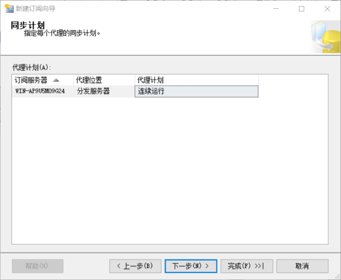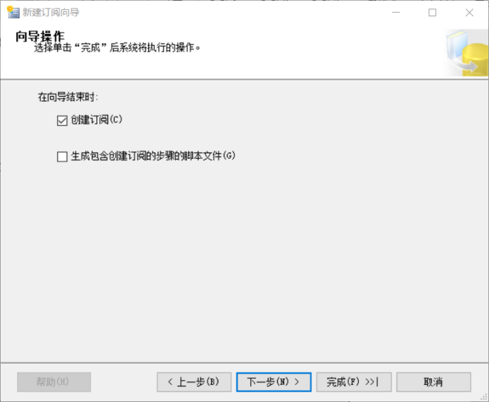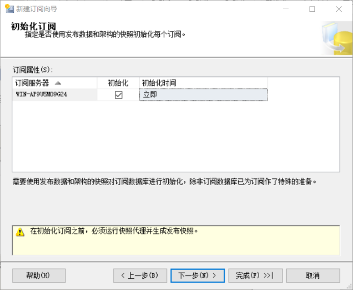 单击“确定”,然后单击“下一步”,就可以进入“同步计划”窗口(图31)。选择“连续运行”,然后转到“初始化订阅”窗口(图32)。保留默认值,以便立即初始化,然后“下一步”到“向导操作”表单(图33)。